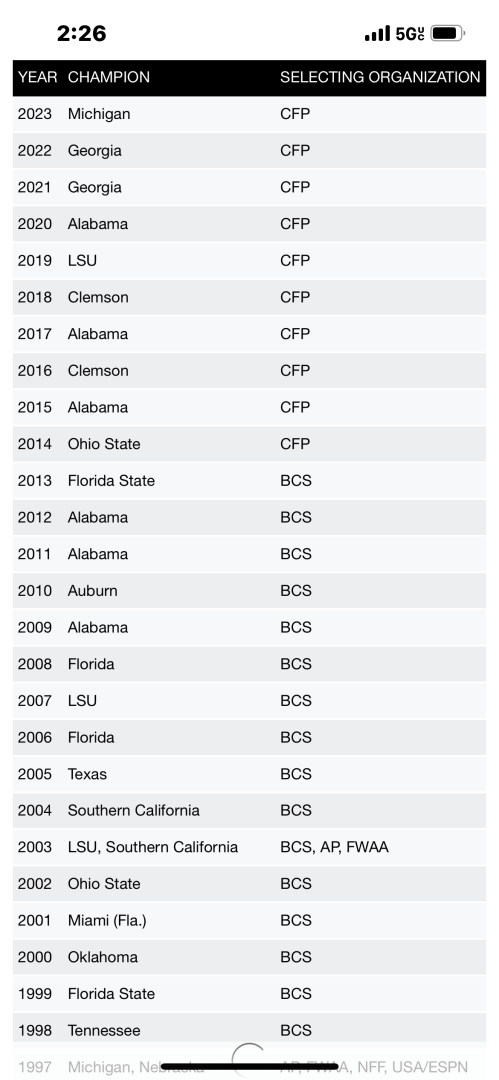 It’s not even debatable homer the SEC has dominated the last 25 years. How can you argue with this and you say I’m full of shit 😂 believe what your eyes is showing you because it’s true. You can go look it up I got that off the ncaa stats.