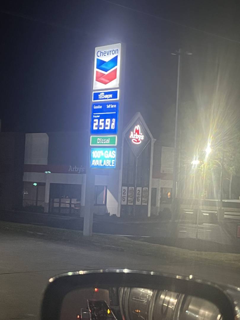 I give $259 yesterday but at the racetrac I’m sitting in right now it’s $279. Gas was $315 around Atlanta. Gotta give the man a year to get his feet back in the game.